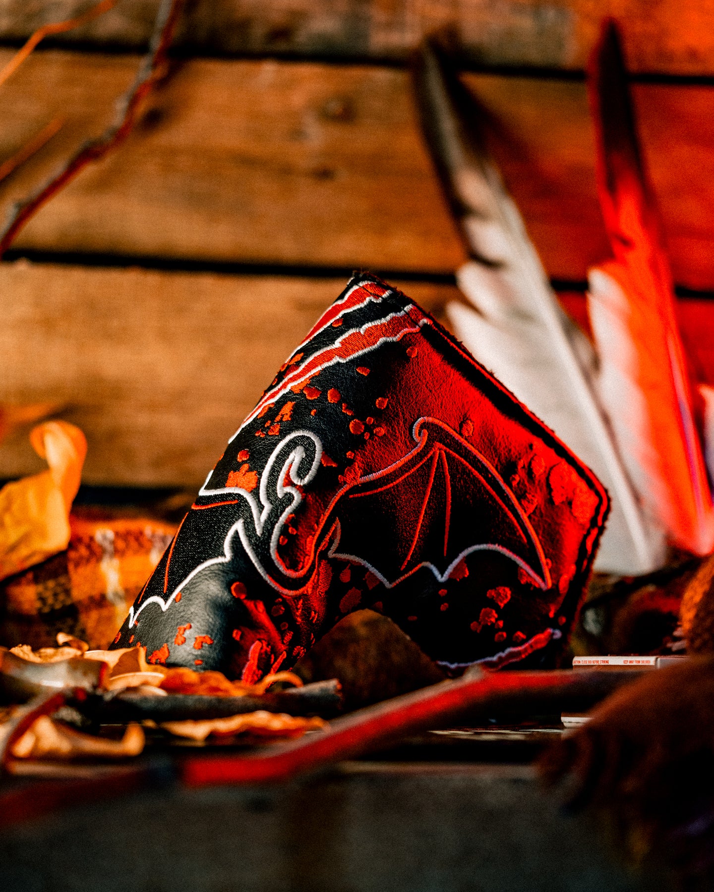 A hand-stitched grip, bound in blood-red cross lace, feels alive in your hands. The custom headcover, conjured in-house, guards it like an artifact — designed to be seen once, remembered forever.